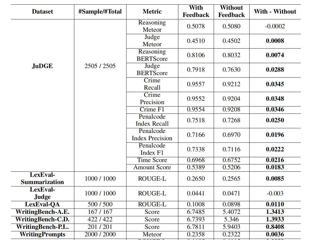 可以看到在大多数数据集上,使用反馈都带来了一定的性能提升。